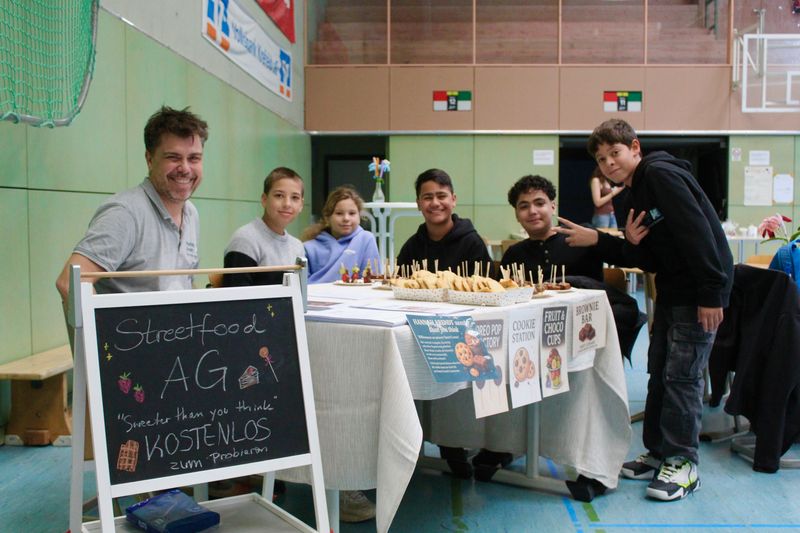 Natürlich war auch für das leibliche Wohl gesorgt: In der Aula, in der sich der “Markt der Möglichkeiten” befand, boten Schülerinnen und Schüler der Oberstufe Kaffee und die Schülerinnen und Schüler der AG “Streetfood”, Kuchen und kleine Snacks an.