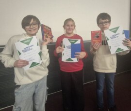 Mit Engagement und Lesefreude waren die Schüler*innen der Klassen 6 a, b und c am Start und trugen Passagen aus ihren Lieblingsbüchern vor. Die Jury aus mehreren Lehrerinnen und Lehrern sowie Laura Khalaf, einer Preisträgerin aus dem Vorjahr, bewertete Lesetechnik, Interpretation und Textstellenauswahl. Unsere diesjährigen Gewinner sind