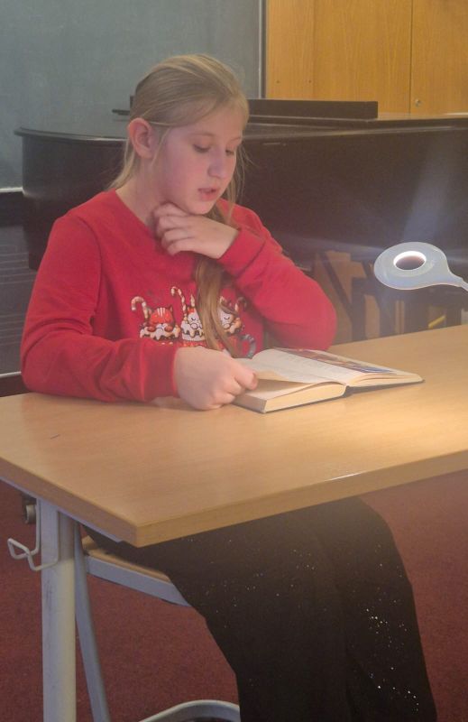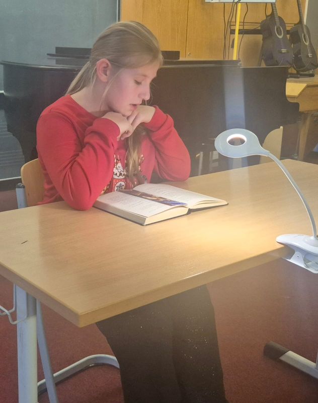 Am 10.12. trafen sich die Klassensieger des Vorlesewettbewerbs mit ihren geladenen Gästen aus den Klassen sowie den Klassen- und Deutschlehrer*innen. Auch die Eltern waren in diesem Jahr eingeladen. Die Veranstaltung fand im Musikraum bei gemütlichem Ambiente statt.