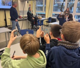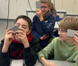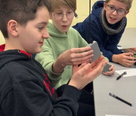 Bei der heutigen Sitzung der MINT-in-mind-AG ging es darum, das Zukunftspotenzial von Mesh-Netzwerken zu erforschen. Das Team der Hochschule Niederrhein ermöglichte den Schülerinnen und Schülern sogar, ein Mesh-Netzwerk selbst zu bauen. Ein cooles Rollenspiel, das verschiedene Situationen – z.B. Ausfall eines Parent-Nodes simulierte- , veranschaulichte das Hierarchiesystem der Nodes (Knotenpunkte): den Root‑, Parent- und Child-Nodes. Schnell wurde deutlich, dass der klare Vorteil von Mesh-Netzwerken darin liegt, dass sie sich selbstorganisiert dynamisch anpassen können, um eine optimale Signalstärke zwischen den Knotenpunkten zu garantieren.