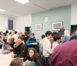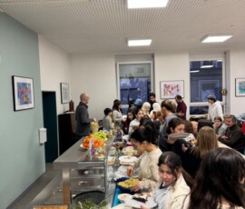 In einer beson­ders war­men und wert­schät­zen­den Atmo­sphä­re fand am HAG eine gemein­sa­me Fei­er zum Fas­ten­bre­chen statt, zu der rund 100 Gäs­te zusam­men­ka­men. Eine Viel­zahl von Schul­ak­teu­ren – Schü­le­rin­nen und Schü­ler, Eltern, Lehr­kräf­te, wei­te­re Mit­glie­der der Schul­ge­mein­schaft sowie die loka­len Koope­ra­ti­ons­part­ner Vil­la Mer­län­der und Weg­wei­ser – waren der Ein­la­dung gefolgt.