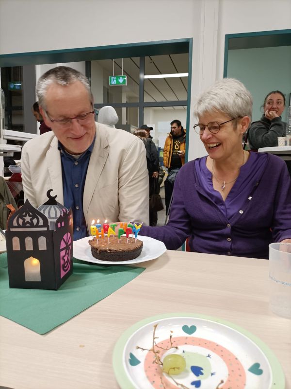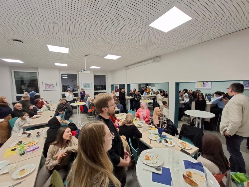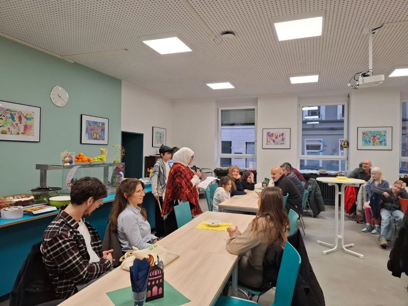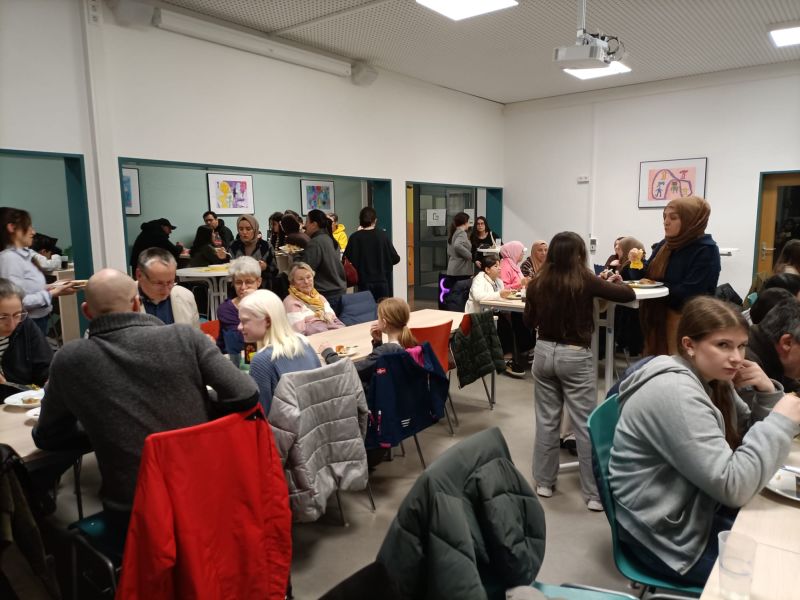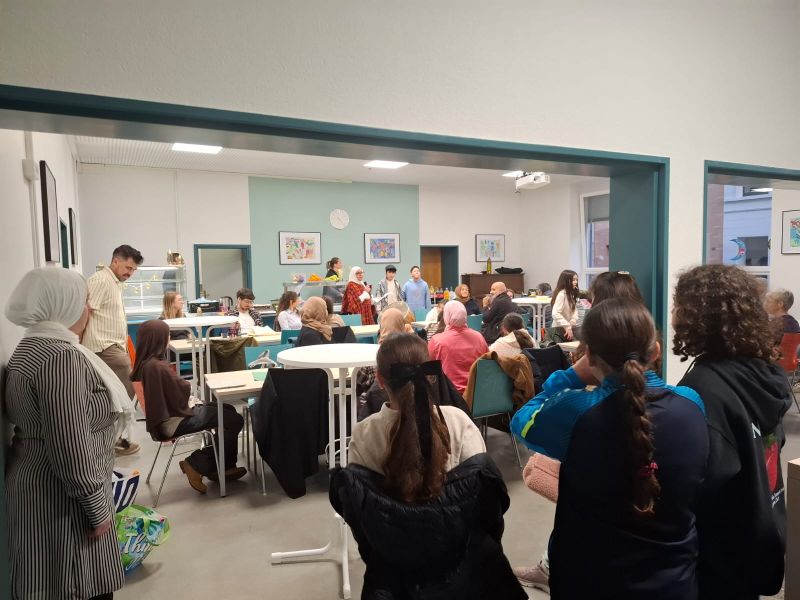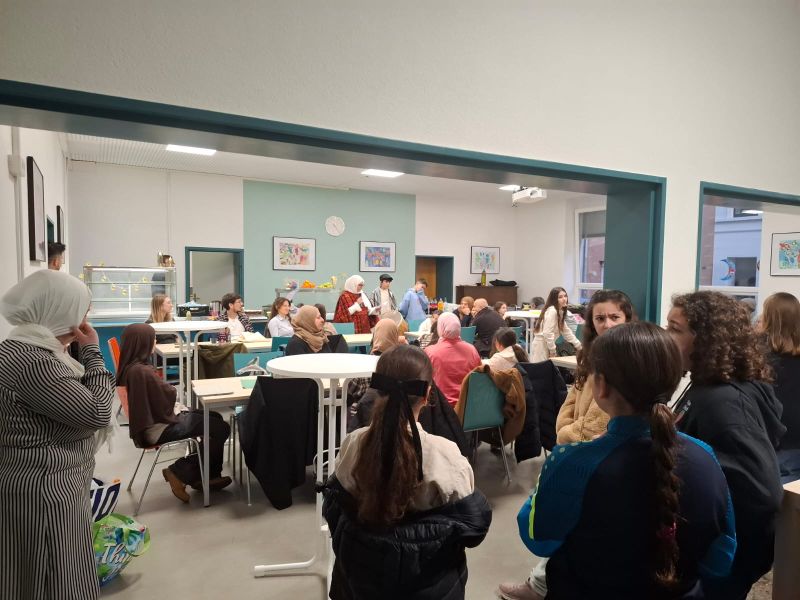 In einer beson­ders war­men und wert­schät­zen­den Atmo­sphä­re fand am HAG eine gemein­sa­me Fei­er zum Fas­ten­bre­chen statt, zu der rund 100 Gäs­te zusam­men­ka­men. Eine Viel­zahl von Schul­ak­teu­ren – Schü­le­rin­nen und Schü­ler, Eltern, Lehr­kräf­te, wei­te­re Mit­glie­der der Schul­ge­mein­schaft sowie die loka­len Koope­ra­ti­ons­part­ner Vil­la Mer­län­der und Weg­wei­ser – waren der Ein­la­dung gefolgt.