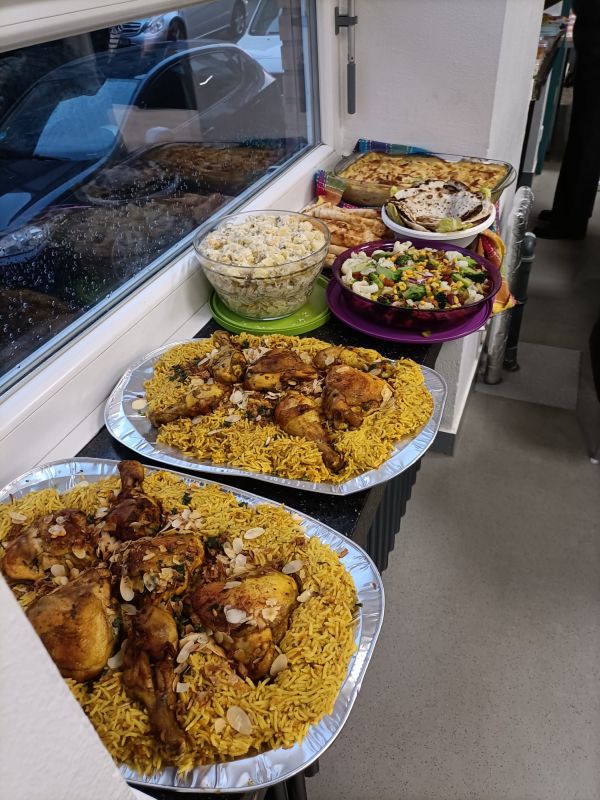 Bei der Orga­ni­sa­ti­on der Fei­er wur­de außer­dem bewusst auf Nach­hal­tig­keit geach­tet. Auf unnö­ti­ge Ver­pa­ckun­gen und Ein­weg­ge­schirr wur­de weit­ge­hend ver­zich­tet. Die­ser Ansatz wur­de von vie­len Gäs­ten posi­tiv wahr­ge­nom­men und steht auch im Ein­klang mit einer Ent­wick­lung inner­halb der mus­li­mi­schen Gemein­schaft. Der ver­ant­wor­tungs­vol­le Umgang mit Res­sour­cen und der Gedan­ke der Nach­hal­tig­keit gewin­nen auch im isla­mi­schen Kon­text zuneh­mend an Bedeu­tung. Von die­ser Ent­wick­lung inner­halb vie­ler Moscheen berich­te­te beson­ders Frau Amer wäh­rend des Planungstreffens.